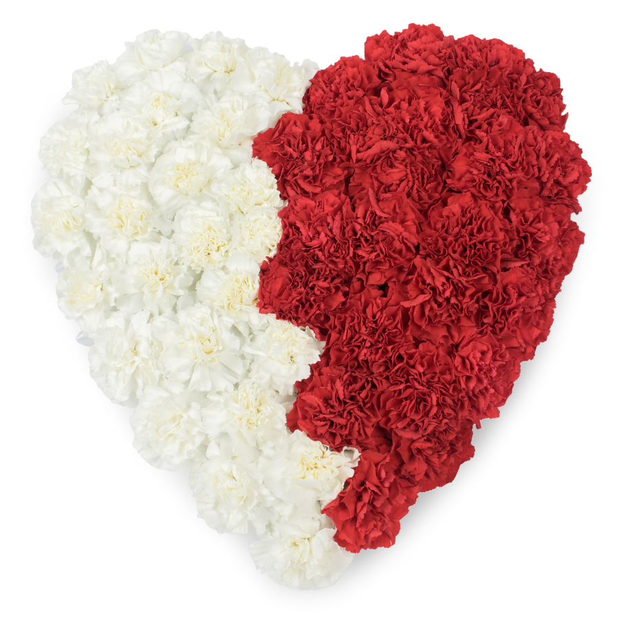 Offer your sympathies with our Serene White & Red Carnation Arrangement, designed to provide comfort and elegance. This arrangement features a blend of pure white and vibrant red carnations, symbolizing peace and love.