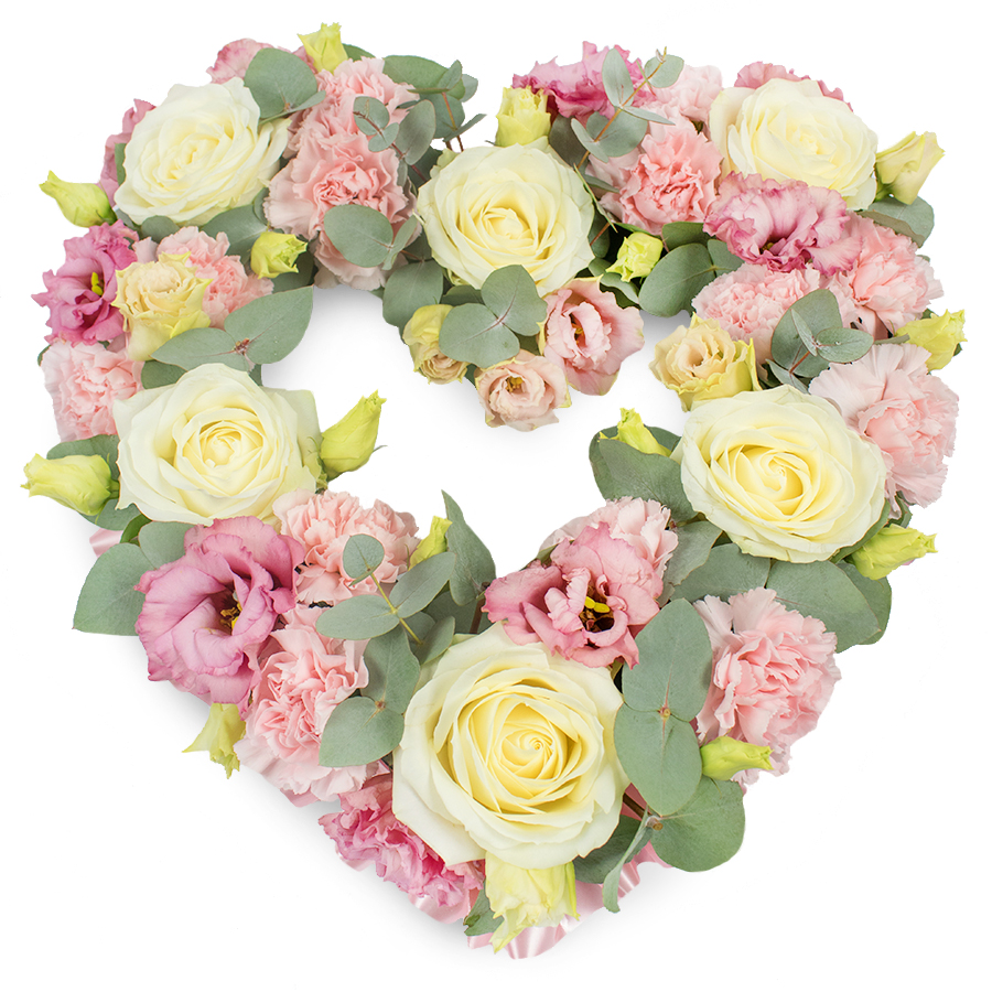 Show your love and respect with our Graceful Remembrance Bouquet, a beautifully arranged tribute that speaks volumes. This stunning bouquet combines elegant white roses, soft pink carnations, charming pink lisianthus, and fragrant eucalyptus leaves.